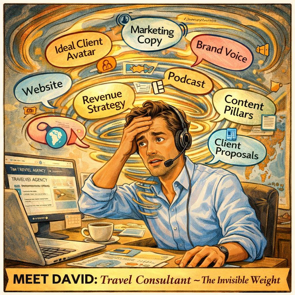 David used to work for a corporate travel agency. His job was clear: build beautiful itineraries. Someone else managed the website. Someone else handled marketing. Someone else defined the ideal client. Someone else worried about revenue strategy.