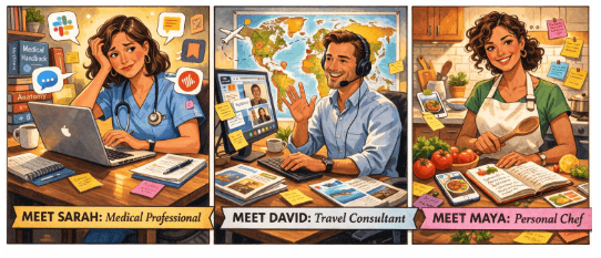 Are you Sarah — able to find ideas when you have time? Are you David — no longer re-researching what you already knew? Are you Maya — starting projects faster?