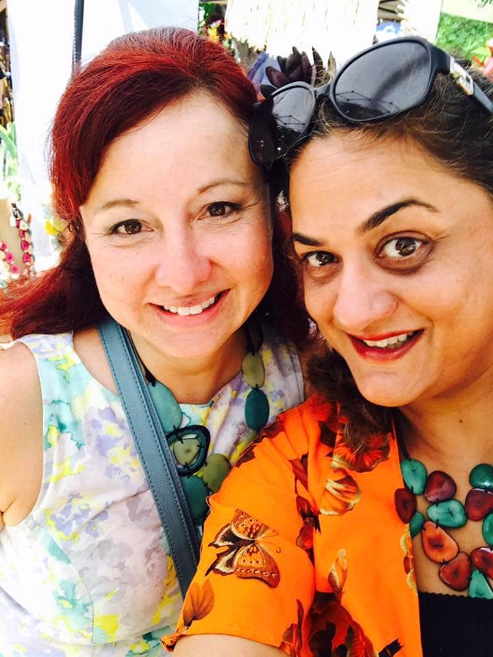 Me and Alessandra — I'm wearing her Tagua nut necklace, handcrafted from the rainforest coast of Ecuador. Two women who went into the field and never came back the same. 🦋